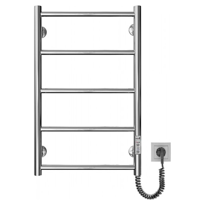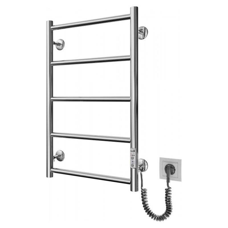 Электросушилка для полотенец бытовая Классик F НР-I 650х430/75 TR K. Оборудована таймером-регулятором и коннектором для подключения в розетку с любой стороны. Совместима с комплектом скрытого подключения. Имеет 5 ребер и стояк из круглой трубы. Изготовлен из полированной нержавеющей стали без хромирования.