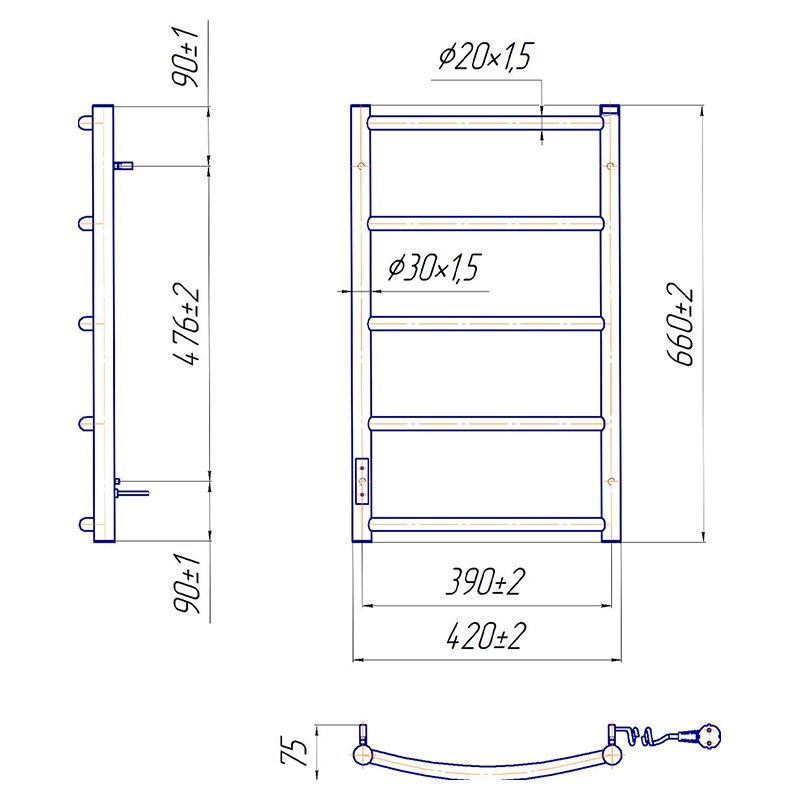 Электросушилка для полотенец бытовая Классик НР-I 650х430/75 TR К. Оборудована таймером-регулятором и коннектором для подключения в розетку с любой стороны. Совместима с комплектом скрытого подключения. Имеет 5 ребер и стояк из круглой трубы. Изготовлен из полированной нержавеющей стали без хромирования.
