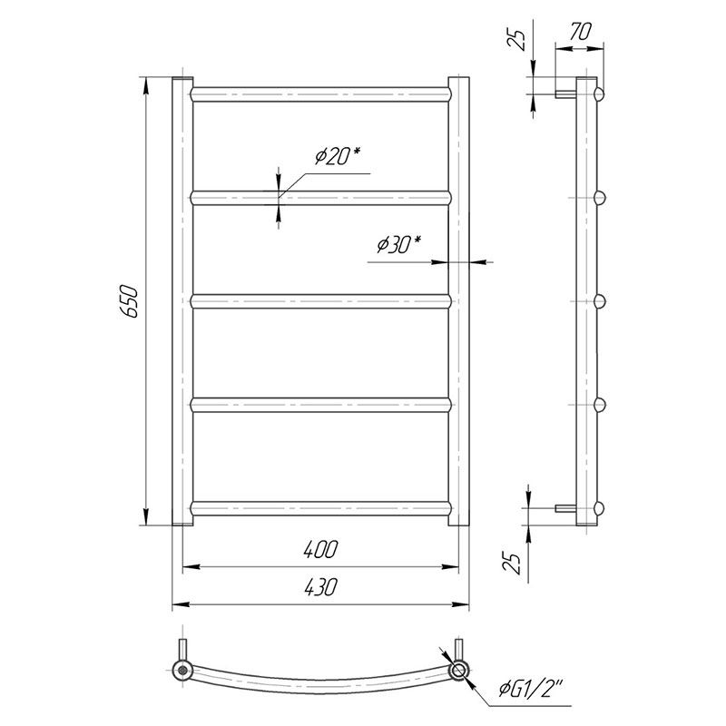 Полотенцесушитель КЛАССИК НР 650х430/400 | 1.3.0100.01.P