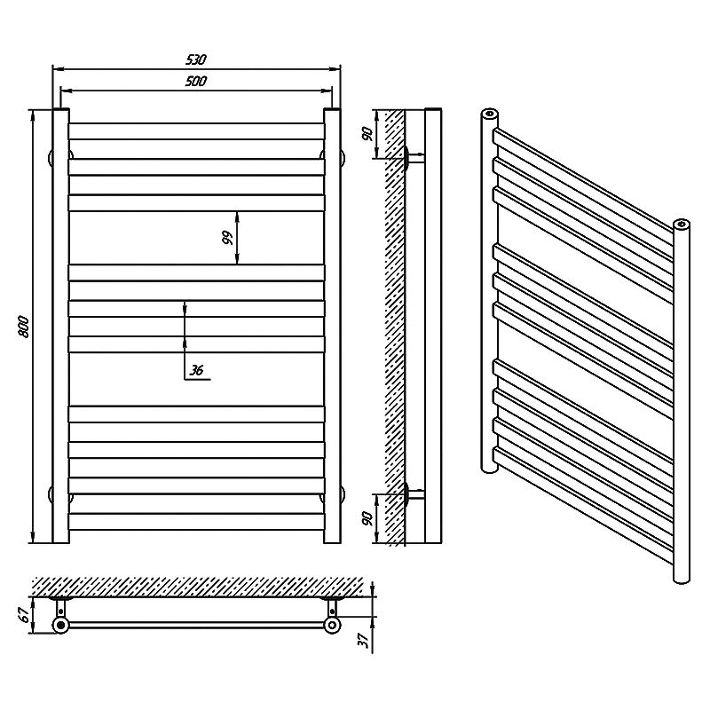 Полотенцесушитель КВАТРО П10, 500*800 | 71207564
