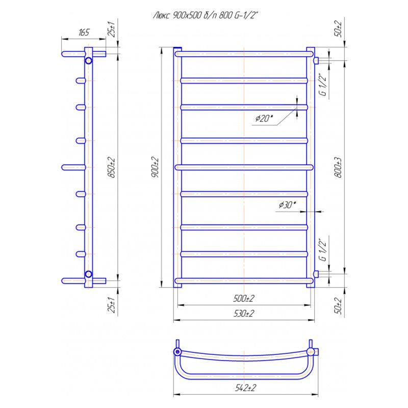 Полотенцесушитель ЛЮКС 900х550/800 Б/П 1/2 | 1.1.2306.02.P