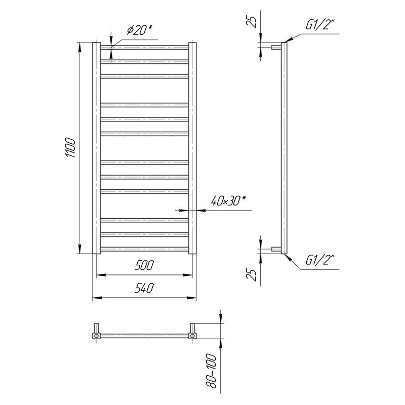 Полотенцесушитель ПРЕМИУМ КЛАССИК 1100х540/500 | 1.2.0102.03.P