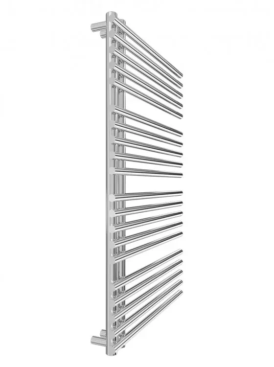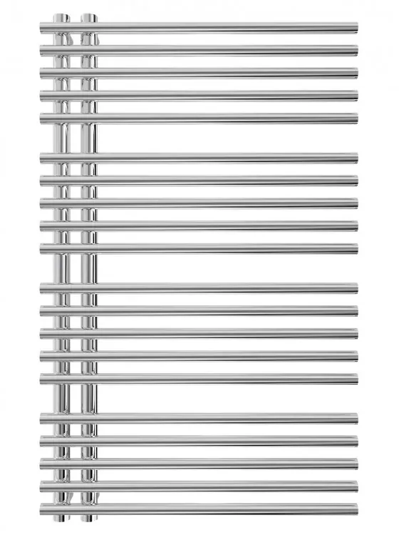 Полотенцесушитель "Марио" Премиум Марсель 900х560/50. Размеры: высота – 900 мм, ширина – 560 мм, глубина 100 мм, межцентровое расстояние для подключения – 50 мм, диаметр подключения G1/2”. Варианты подключения: нижнее, диагональное и боковое. Количество ребер – 20, стояки из круглой трубы. Изготовлен из полированной нержавеющей стали без хромирования.