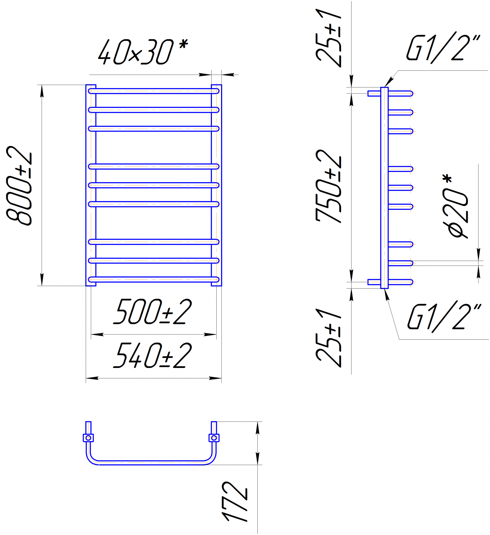 Полотенцесушитель ПРЕМИУМ СТАНДАРТ 800х540/500 | 1.2.0200.03.P