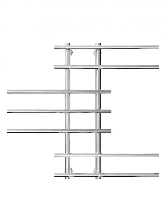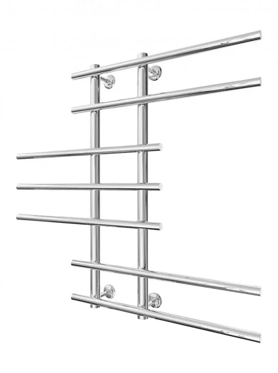 Полотенцесушитель "Марио" Симфония 700х770/160. Размеры: высота – 700 мм, ширина – 770 мм, глубина 100 мм, межцентровое расстояние для подключения – 160 мм, диаметр подключения G1/2”. Варианты подключения: нижнее, диагональное. Количество ребер – 7, стояки из круглой трубы. Изготовлен из полированной нержавеющей стали без хромирования.