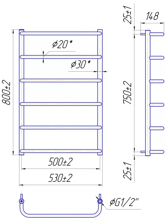 Полотенцесушитель СТАНДАРТ 800х530/500 | 1.1.0207.01.P