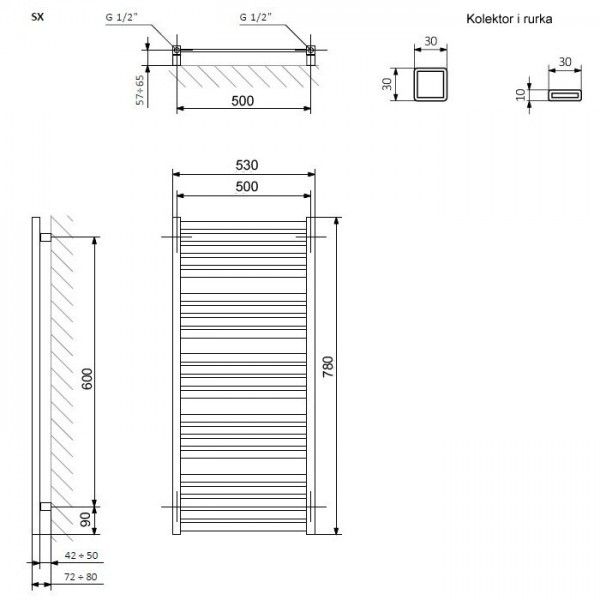Полотенцесушитель TERMA Marlin 780х530 RAL 9016 SX | WGMAR078053K916SX
