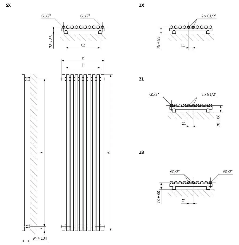 Теплоотдача, (при 60 С):600-1200 W