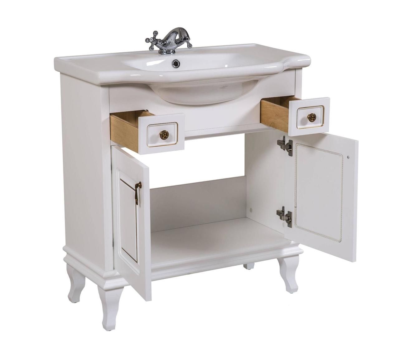Тумба с умывальником Беатриче New Klasik Белая Патина Золото 80, Аква Родос | АР000040194
