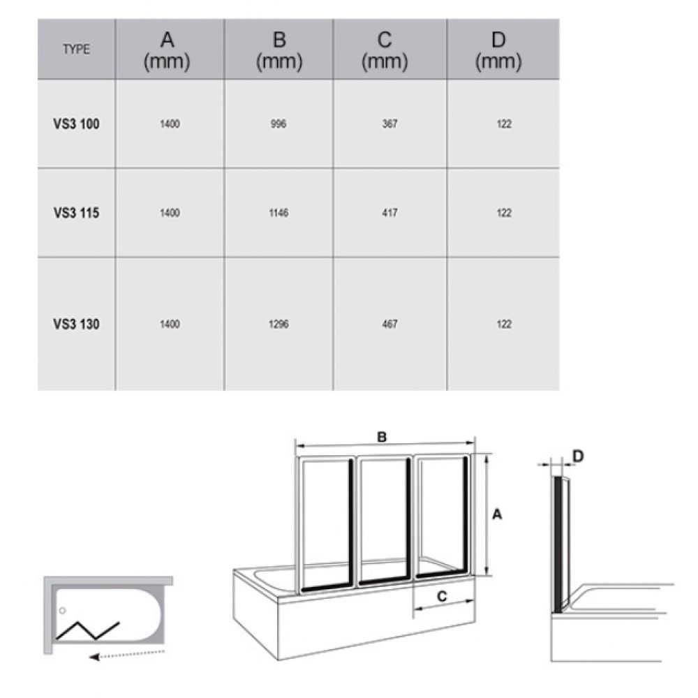 Шторка для ванны RAVAK VS3 — практичное и универсальное решение, сочетающее функциональность и эстетику. Она состоит из трех подвижных частей, которые полностью складываются внутрь ванны, обеспечивая удобный доступ и экономию пространства.
