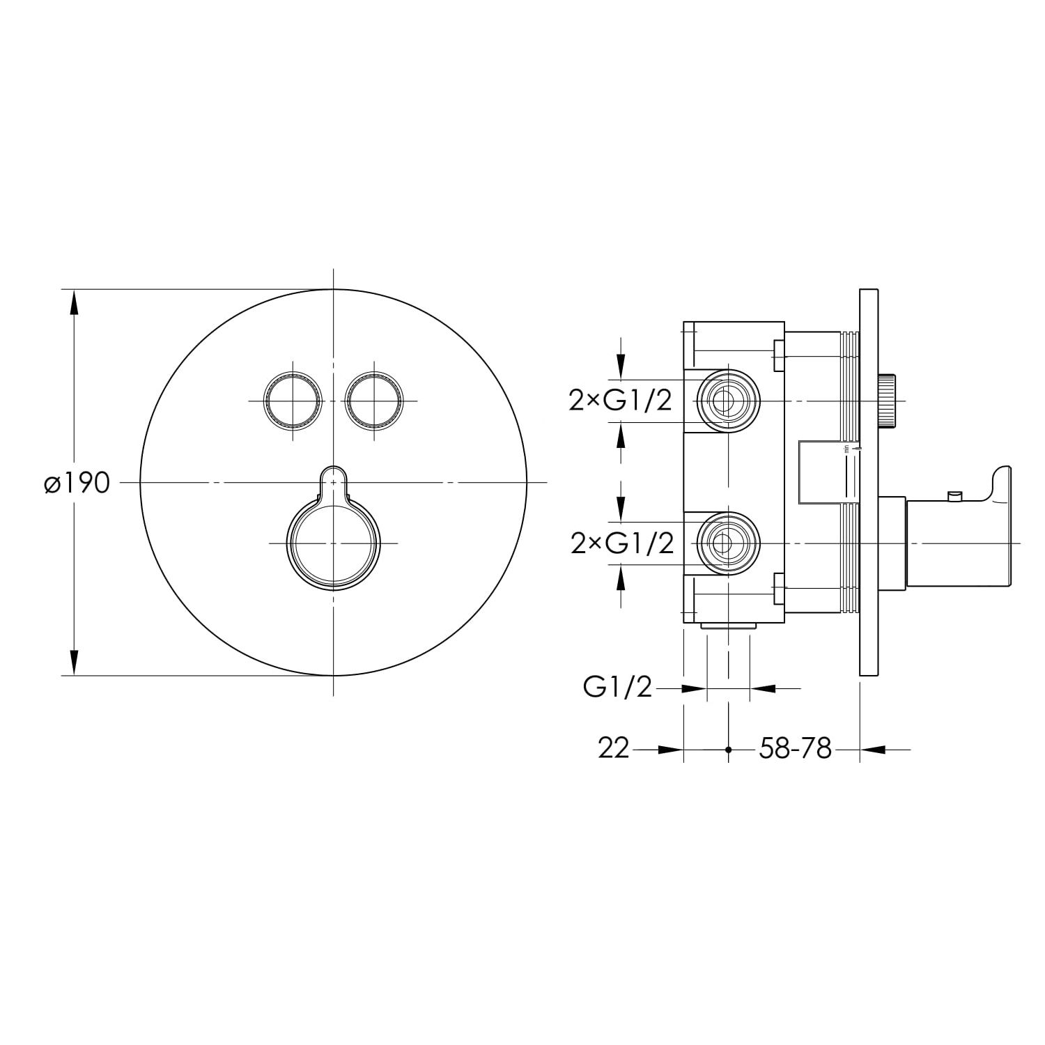 SMART CLICK смеситель для душа, термостат, скрытый монтаж, 2 режима, кнопки с регулировкой потока, круглая накладка, латунь, хром | ZMK101901237