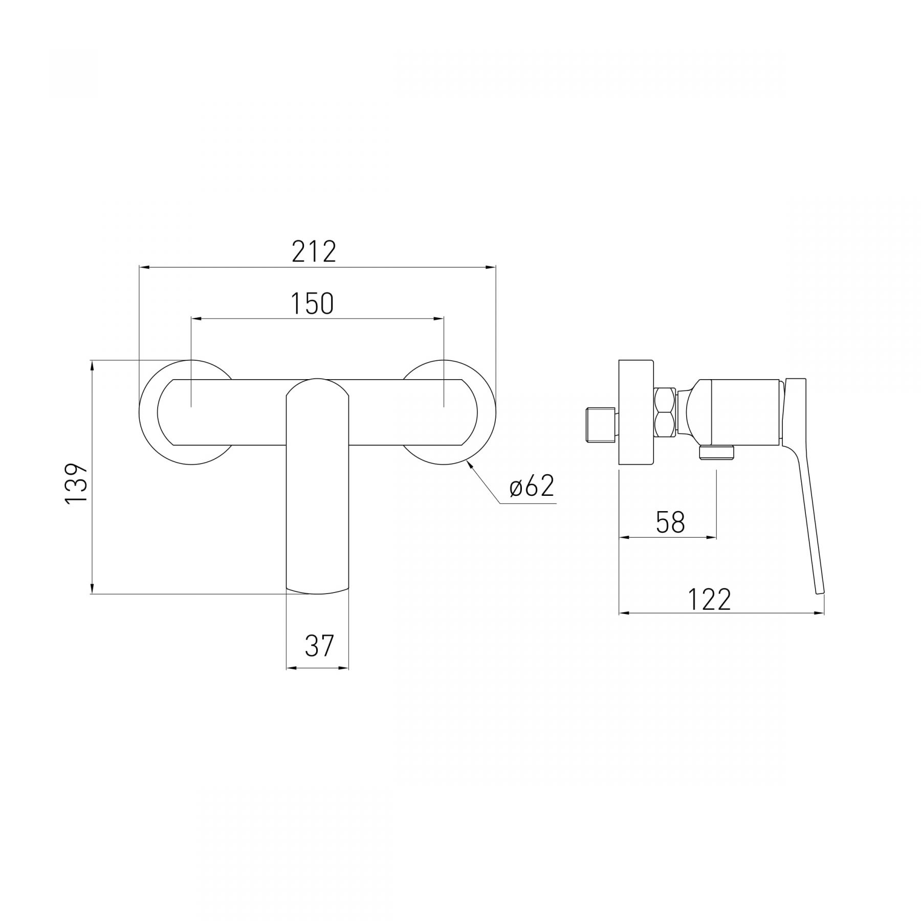 Тип монтажа: настенный, 2 отверстия