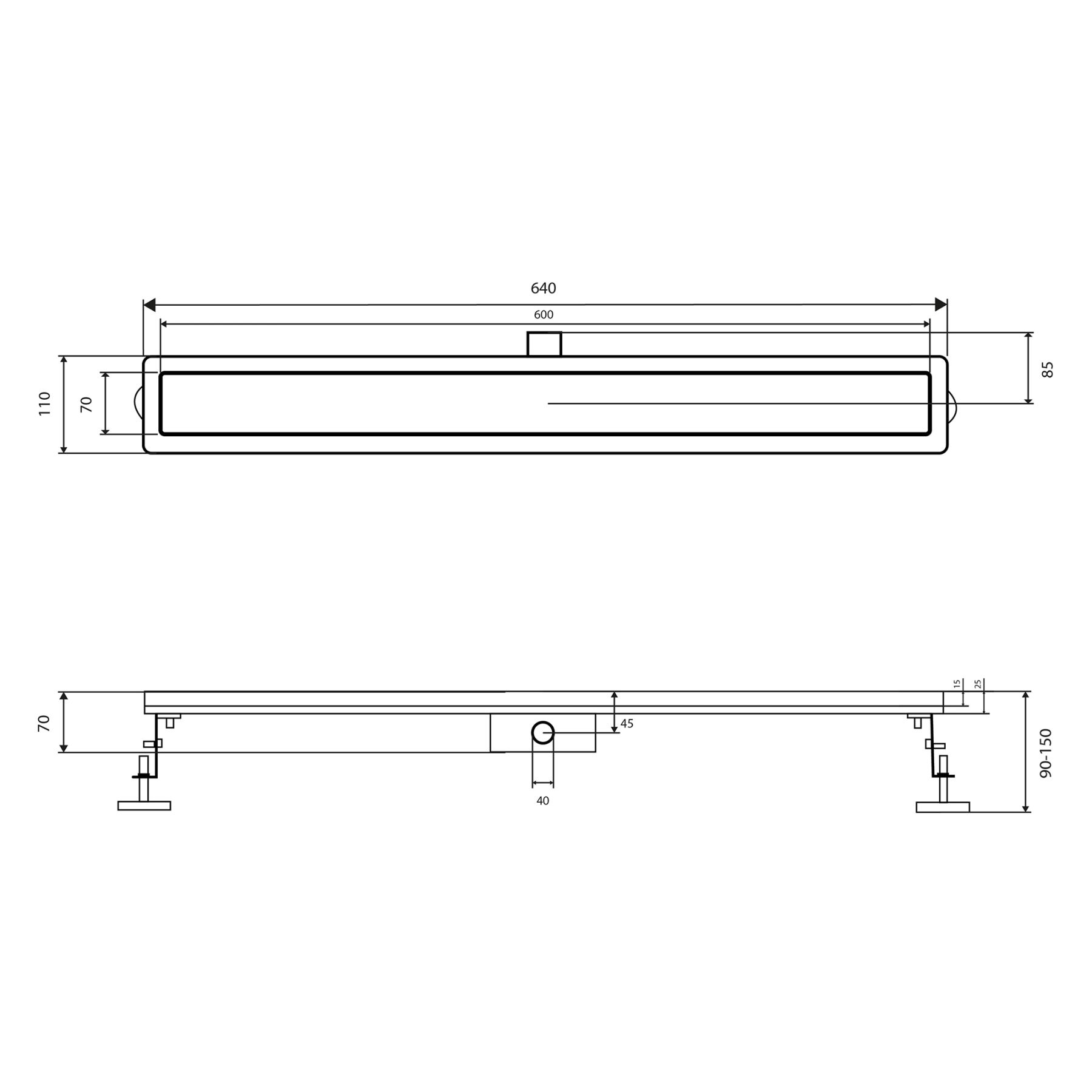 Трап из нержавеющей стали Qtap Scorpio Tile600 линейный под плитку (поворотный сифон/сухой затвор) | SD00052800