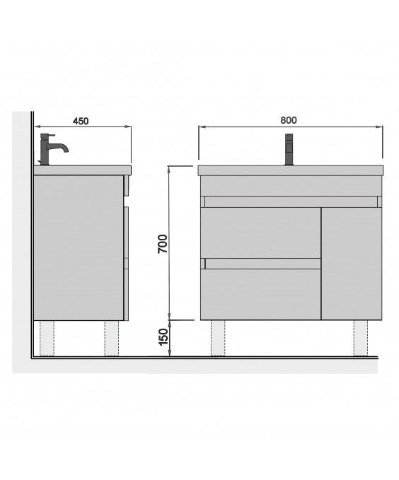 Наша тумба оснащена двома висувними ящиками і умивальником Cosmo 80.