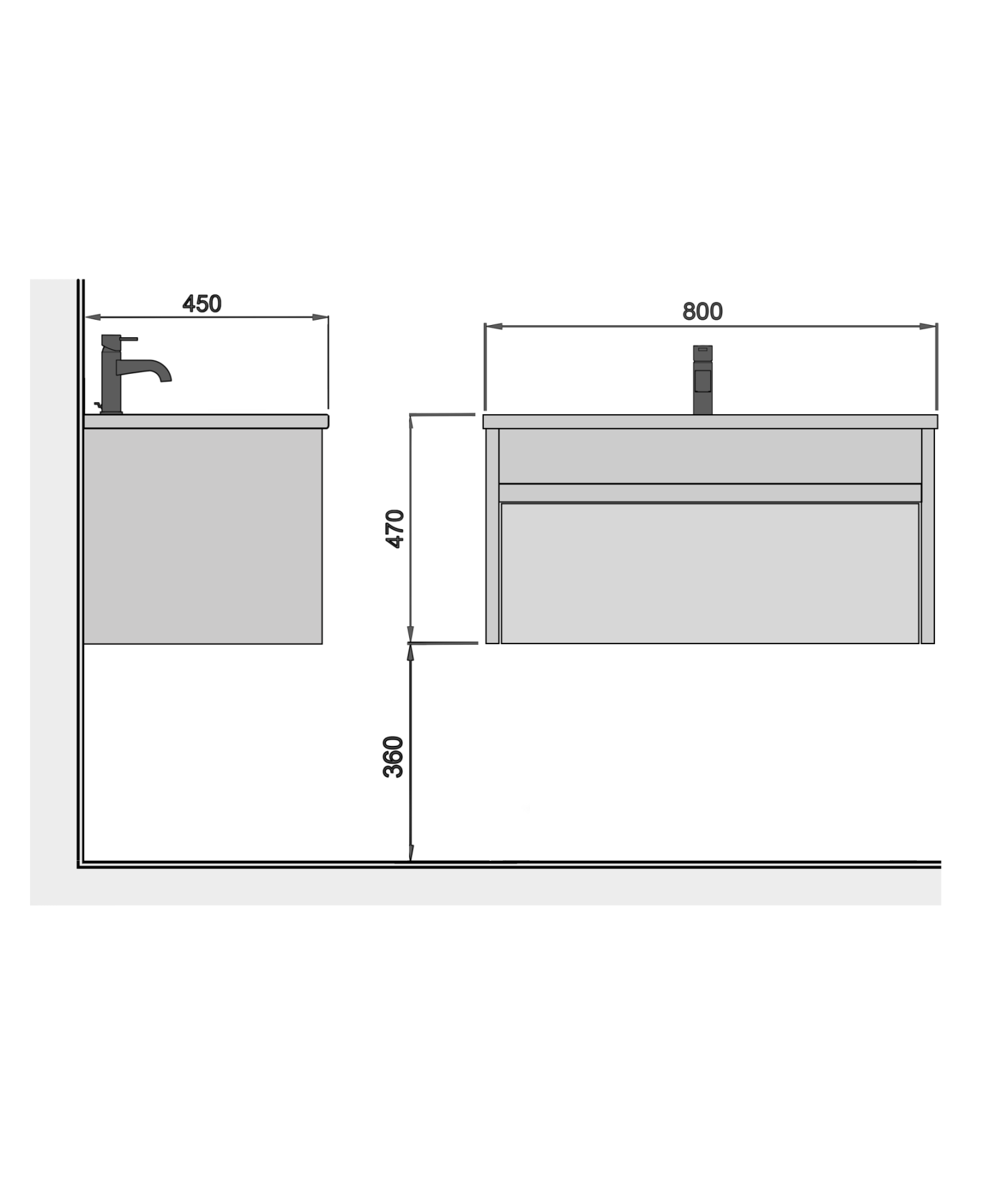 Тумба Prime 80-А с умывальником Cosmo 80 подвесная | 00-0008150
