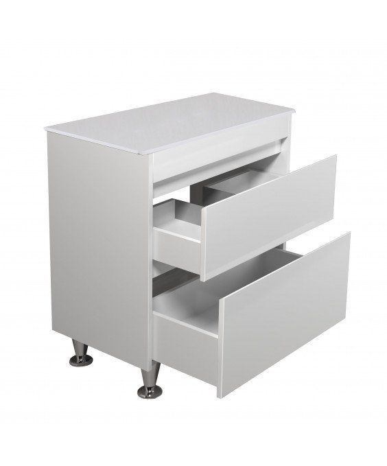 Prime 80 ST - це тумба зі стільницею, що оснащена двома висувними ящиками. Ящики оснащені системою плавного закривання Hettich (Німеччина)