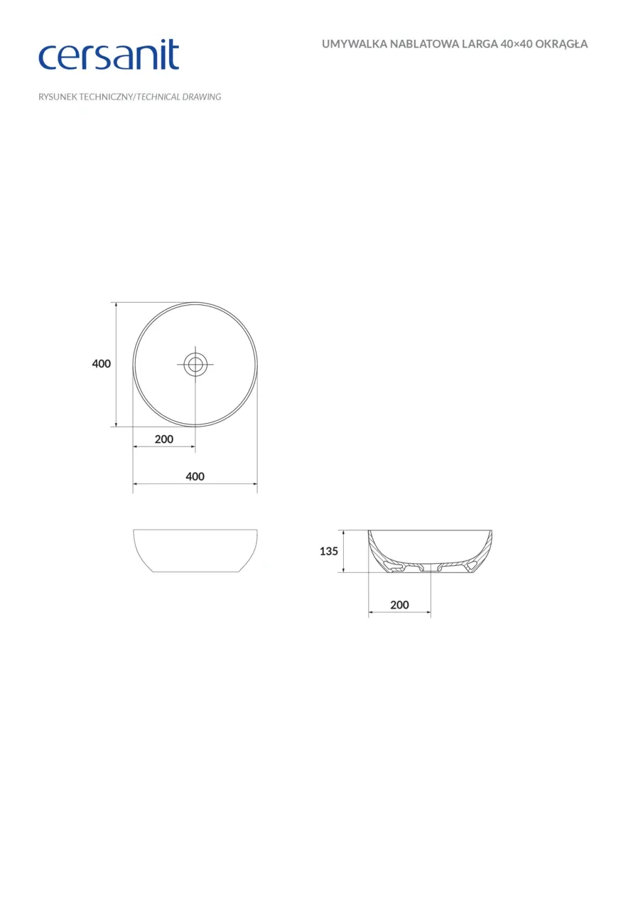 Умывальник 40 см Larga Euro White CCWT1000736401 Cersanit | CCWT1000736401
