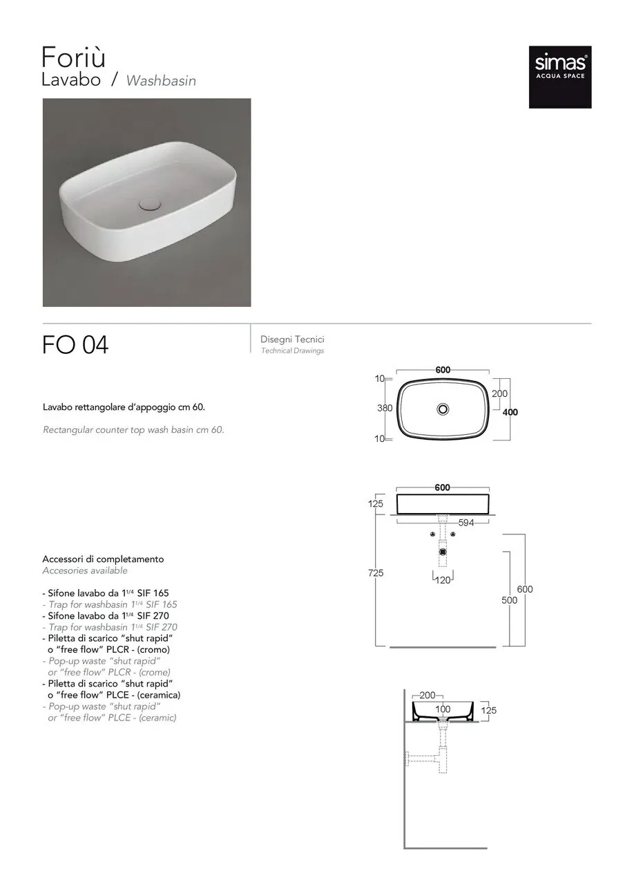 Умывальник 60 FORIU FO04NaM Navy Matt SIMAS | FO04NaM