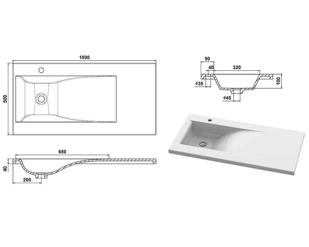 Ширина раковины:от 91 см до 1 м
