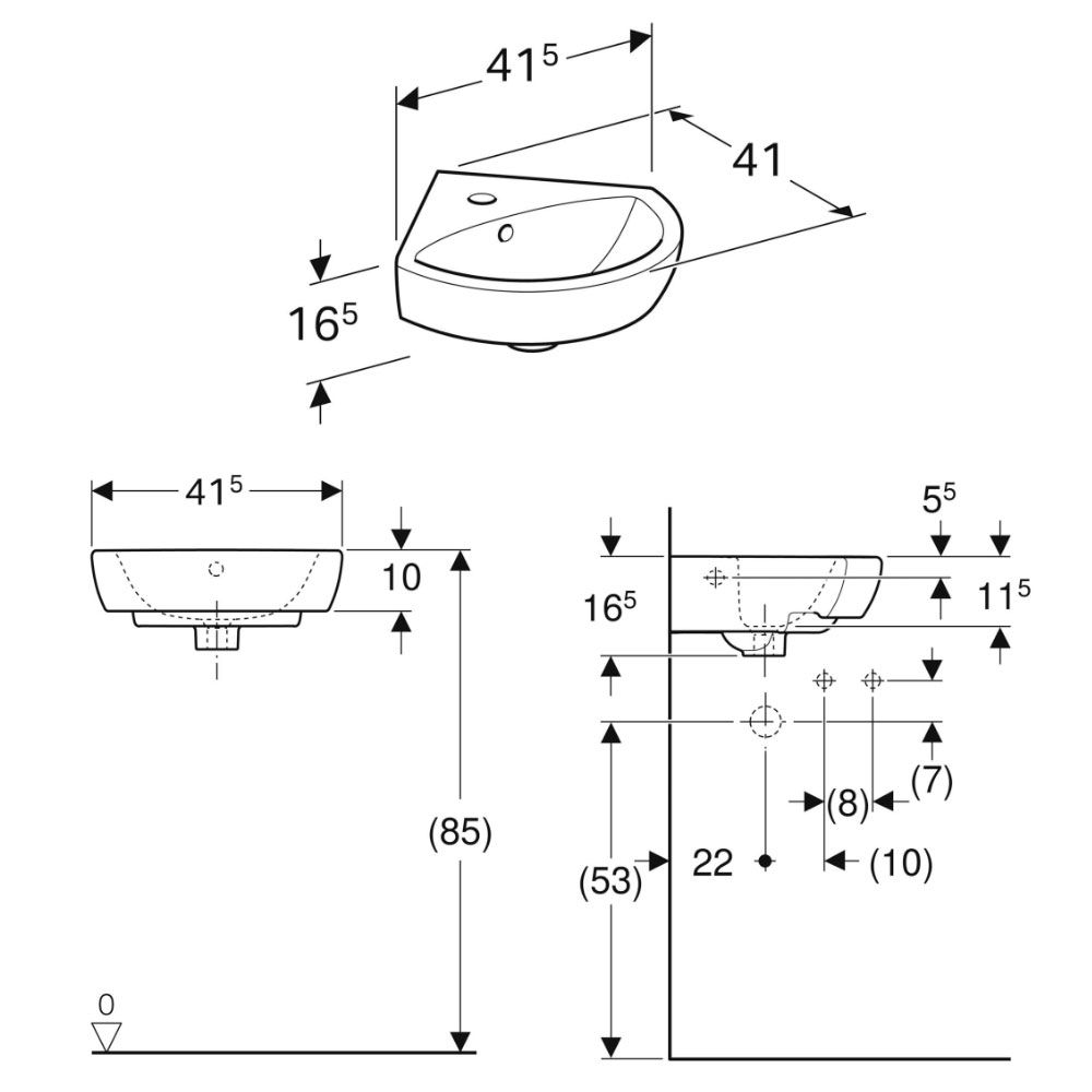 Умывальник Geberit Selnova Угловая, с 1 отв.под смеситель, с переливом | 500.326.01.5