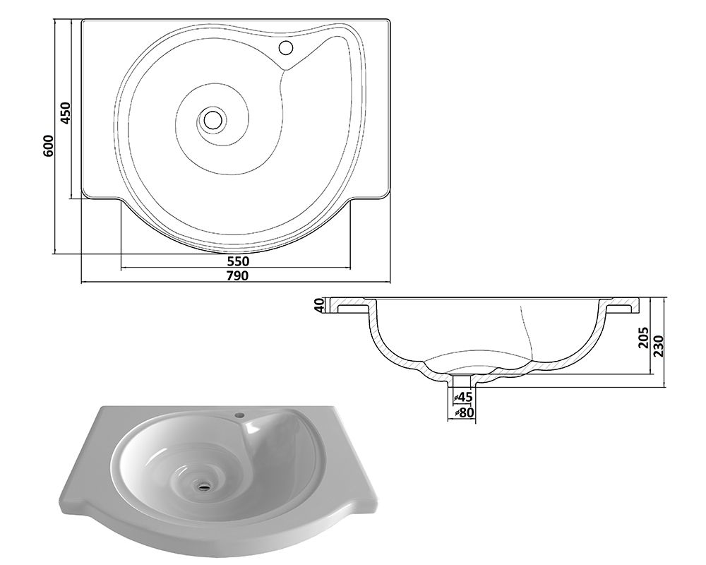 Умывальник «Наутилус» 80 см Ночь B220 глянец | 101B220