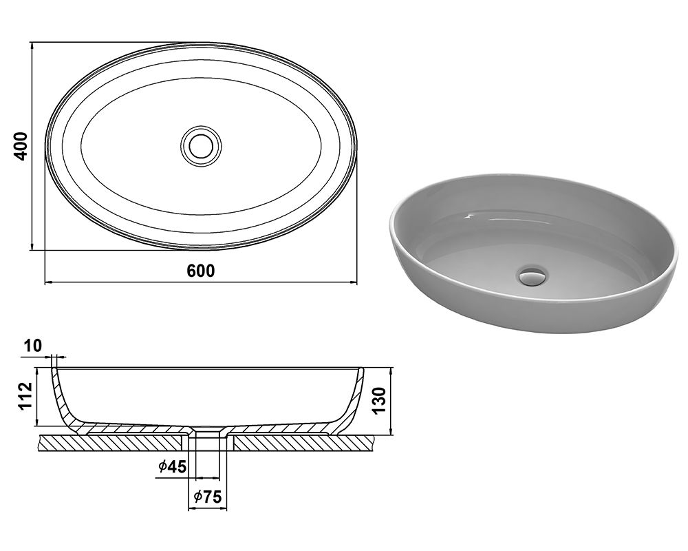 Отверстие под перелив:Без перелива