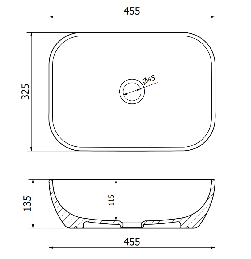 Отверстие под перелив:Без перелива