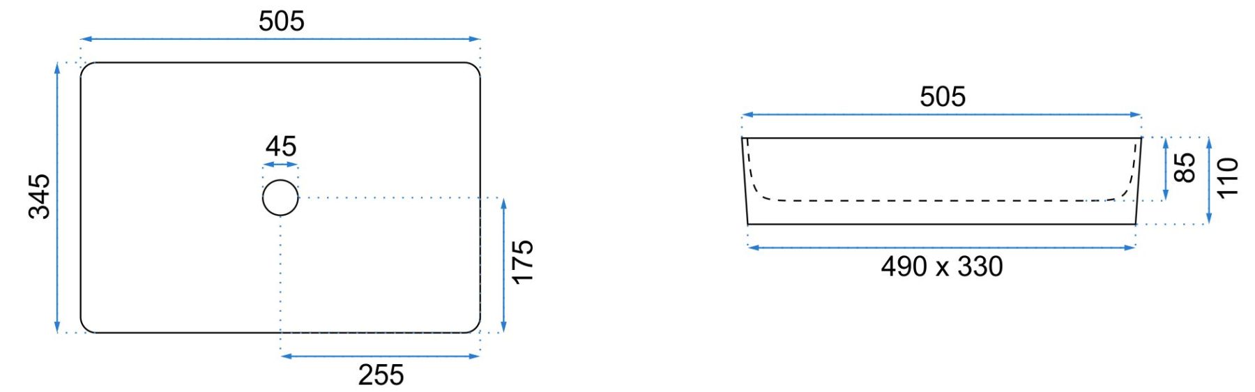 Отверстие под перелив:Без перелива