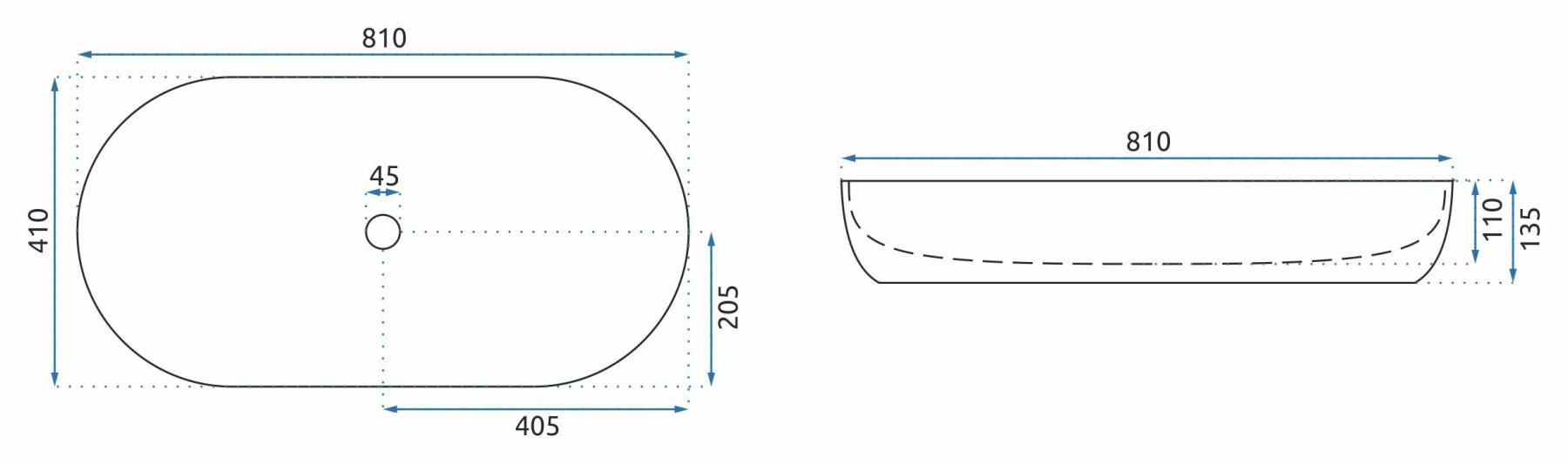 Отверстие под перелив:Без перелива