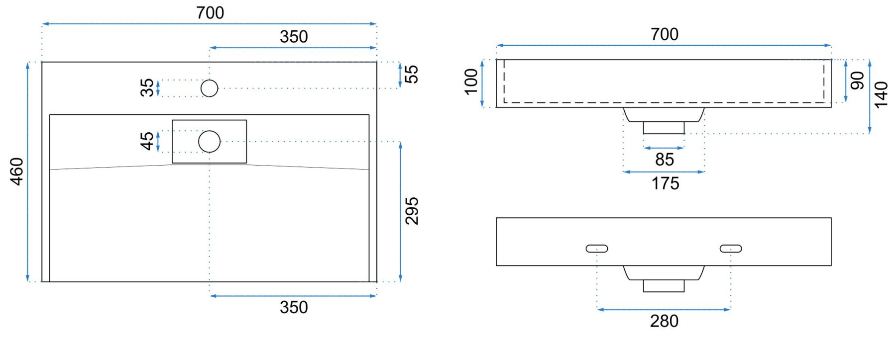 Отверстие под перелив:Без перелива