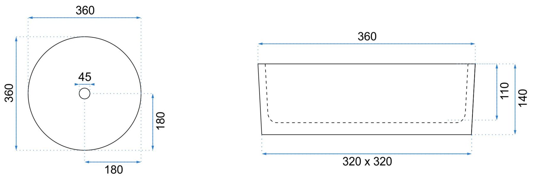 Отверстие под перелив:Без перелива