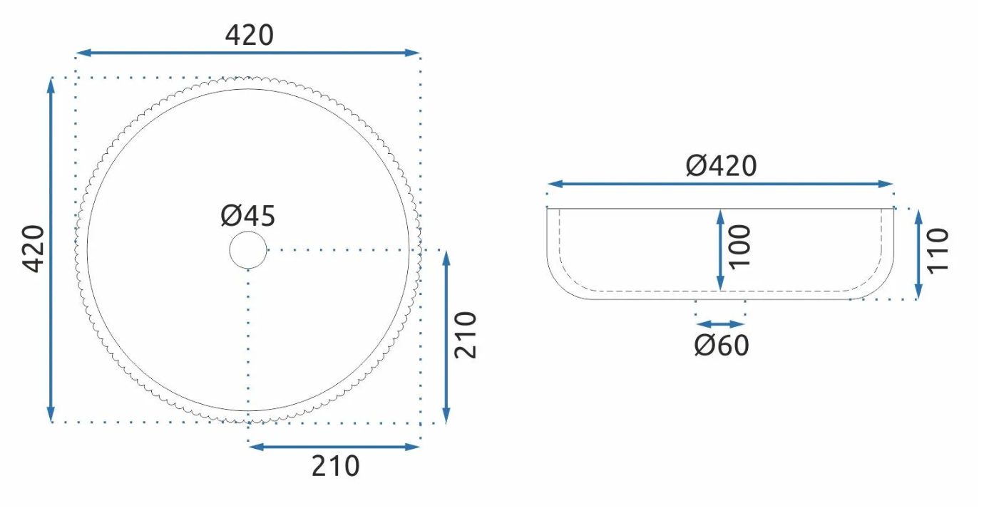 Отверстие под перелив:Без перелива