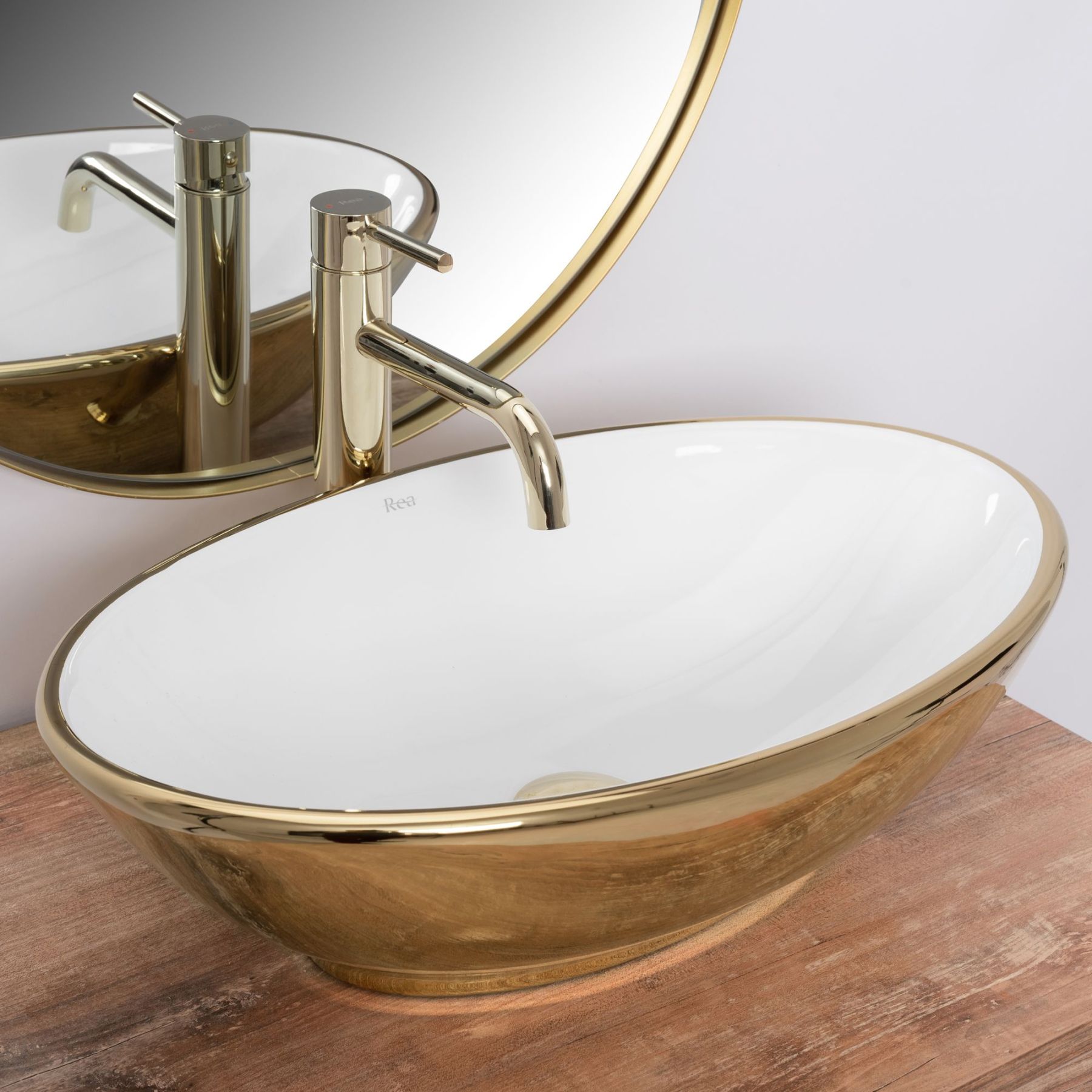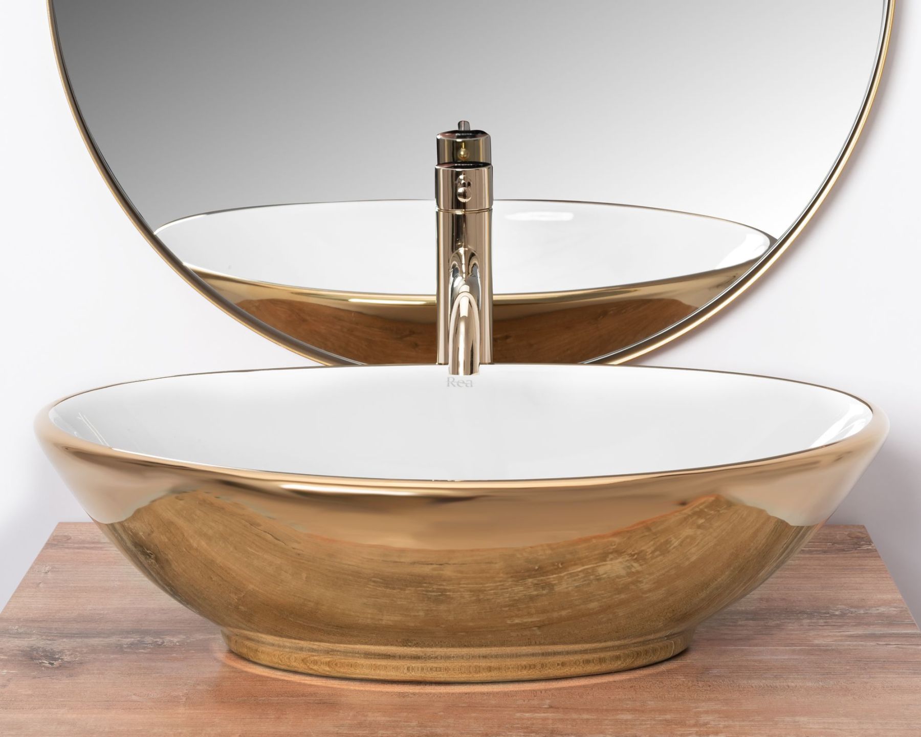 Умывальник REA PAMELA GOLD WHITE накладной | REA-U6345