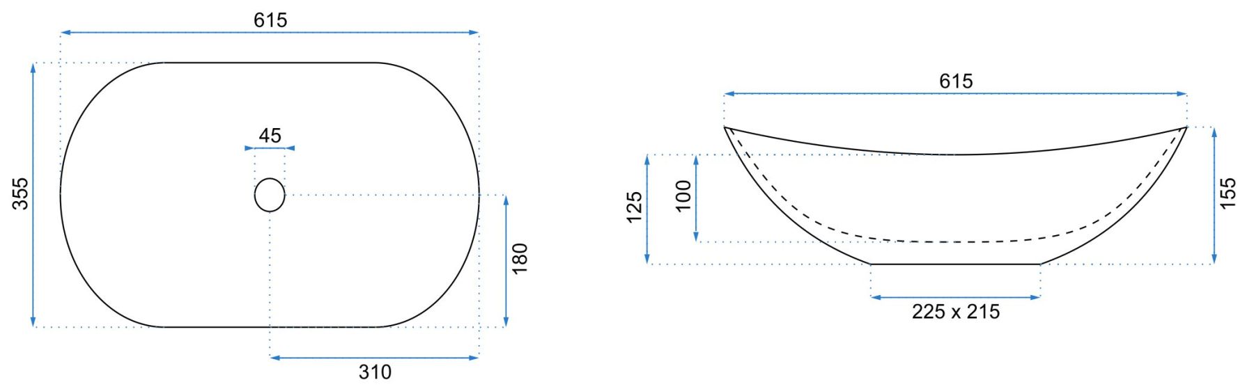 Отверстие под перелив:Без перелива