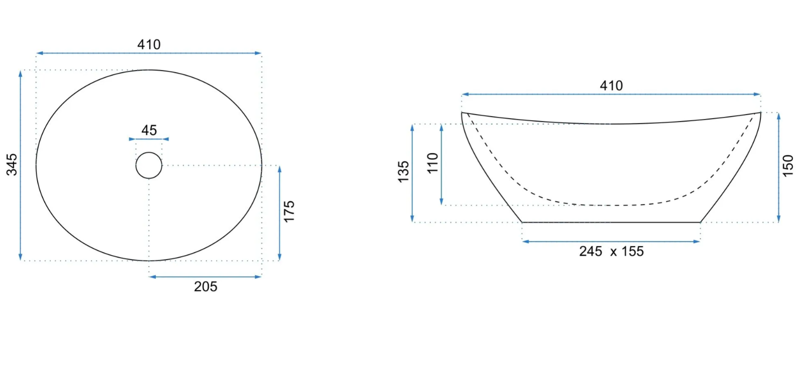 Отверстие под перелив:Без перелива