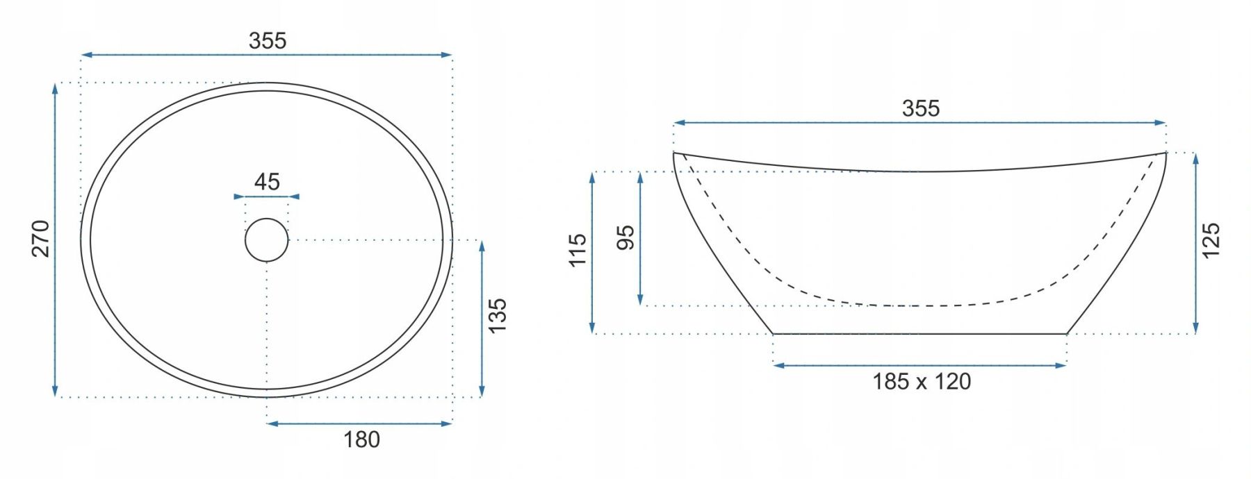 Отверстие под перелив:Без перелива