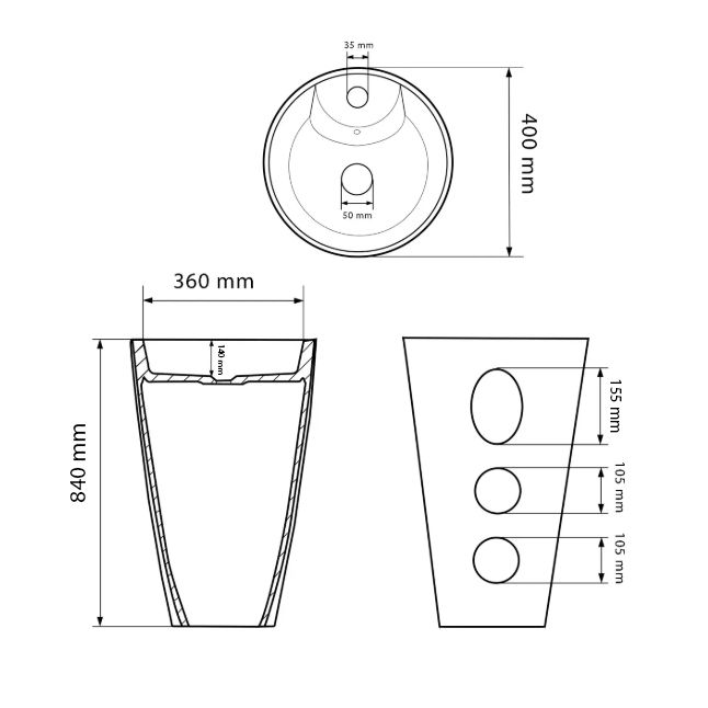 Отдельностоящая раковина из коллекции Bolonia поражает своим круглым профилем, сверху вниз она будто немного сужается, что придает раковине легкости. Умывальник станет центральным элементом ванной комнаты и придаст ей выразительный вид. Раковина имеет отверстие для смесителя, что позволяет сэкономить драгоценное пространство в ванной комнате. В раковине есть отверстия в задней стенке и в дне, для любого удобного способа подключения к выходу канализации.