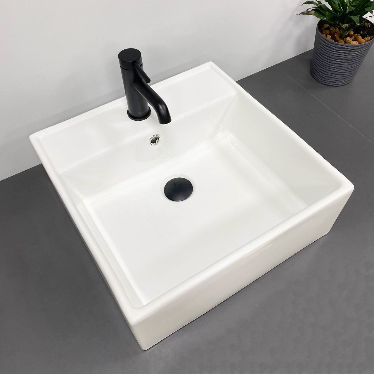 Раковины VBI TERAMO пользуются высоким спросом и доступны в классическом белом цвете с глянцевым покрытием, в разных размерах. Накладная по способу установки раковина имеет отверстие для смесителя, что позволяет сэкономить драгоценное пространство в ванной комнате. Раковина квадратной формы с четкими прямыми линиями.