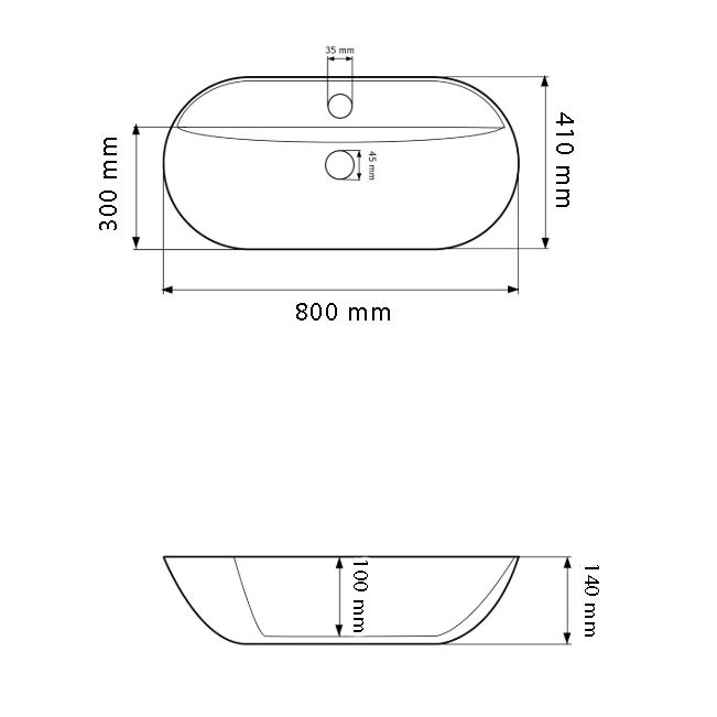 Отверстие под перелив:Без перелива