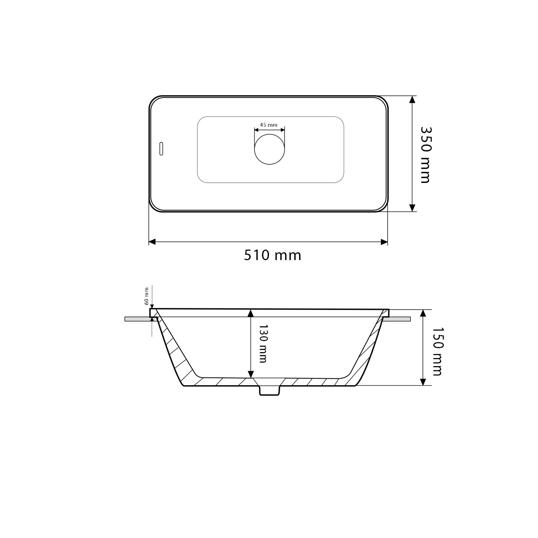 Отверстие под перелив:Без перелива