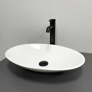 Накладной умывальник VBI TUFARA - пользуется высоким спросом и доступен в белом цвете в глянцевом исполнении. Накладная по способу установки раковина - имеет современную овальную форму. Это позволяет подобрать смеситель, как круглой, так и квадратной формы.