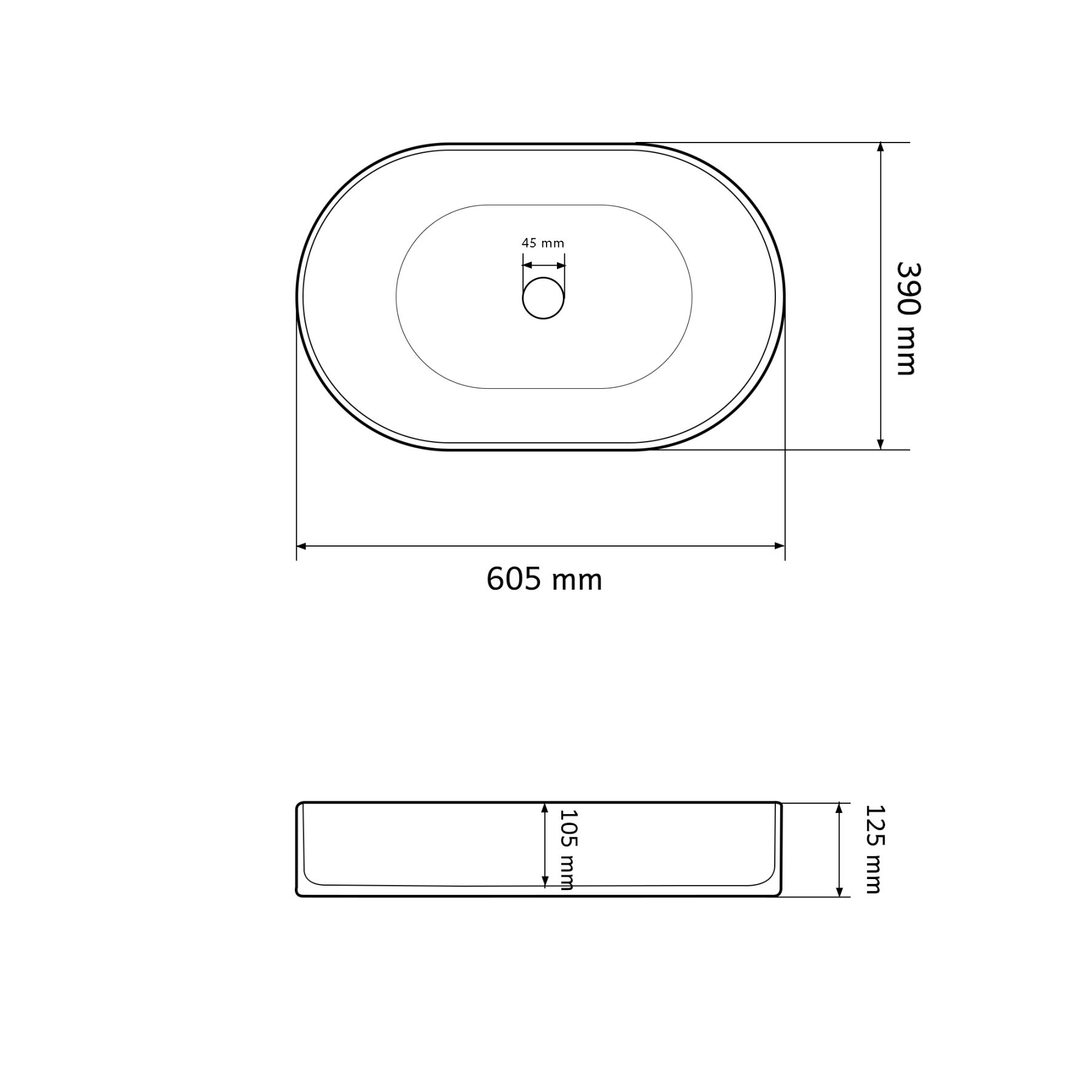 Отверстие под перелив:Без перелива