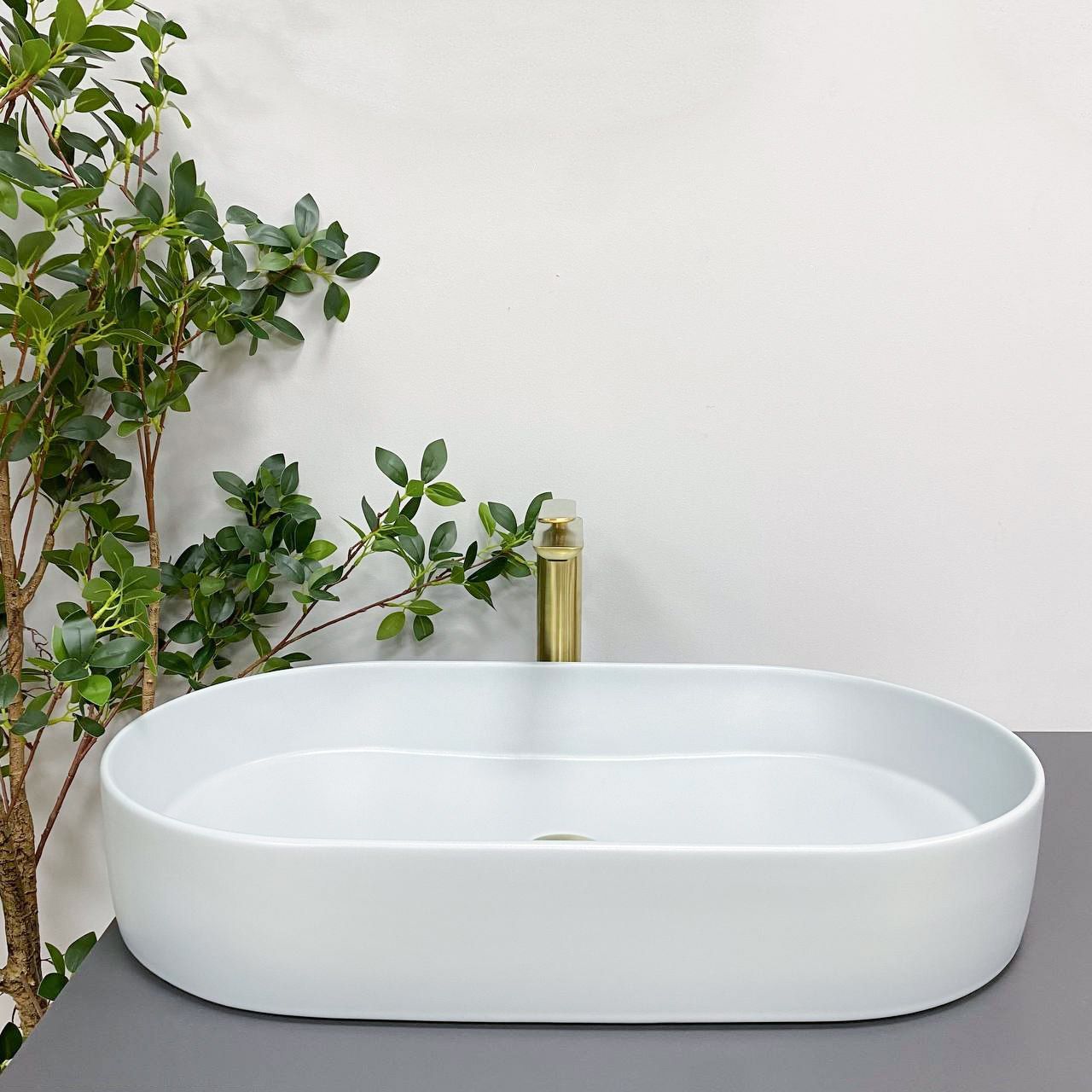 Накладные раковины серии VBI VERONA пользуются высоким спросом и доступны в разных размерах и цветах в глянцевом или матовом исполнении. Накладная по способу установки раковина имеет классическую овальную форму с четкими линиями. Это позволяет подобрать смеситель, как круглой, так и квадратной формы.
