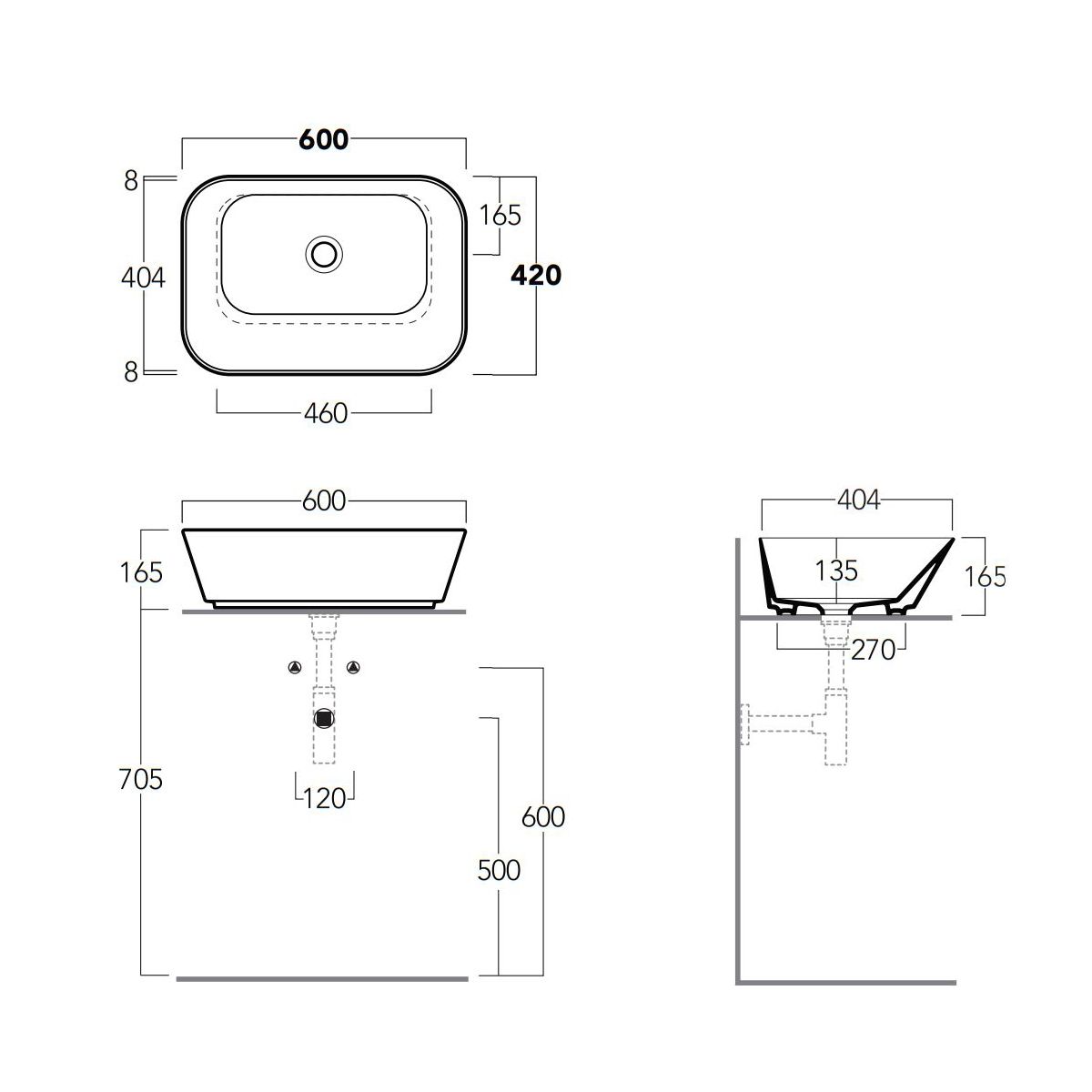Отверстие под перелив:Без перелива