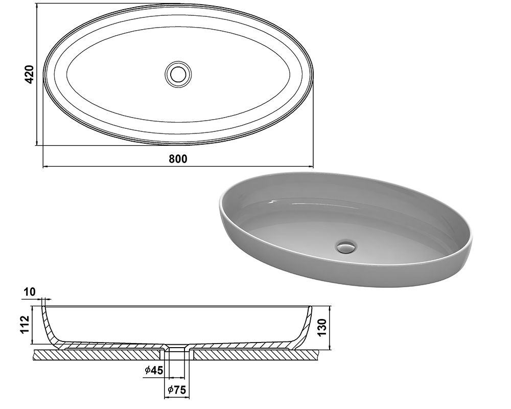 Умывальник «Фараон» 80 см белый А100М МАТ | 169A100M