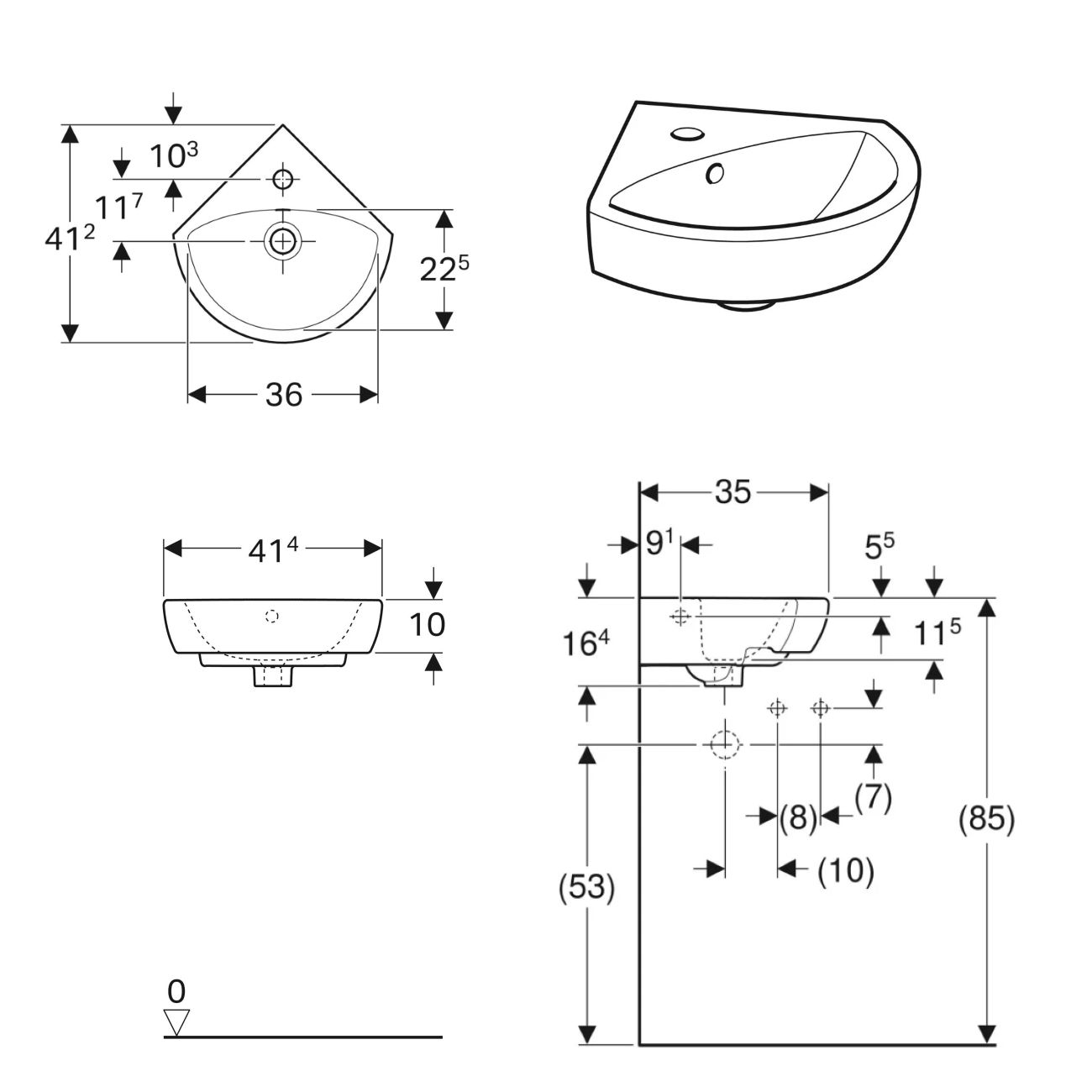 Умывальник Geberit SELNOVA 41,4*16,4*41,2см, угловой, с отверстием под смеситель и переливом | 500.326.01.1
