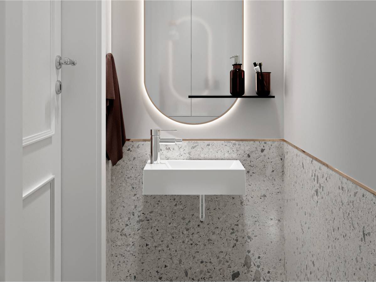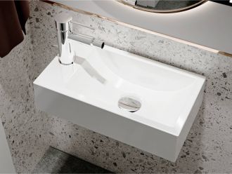 На заключительном этапе производства, чтобы получить глянцевый блеск, Умывальник FARO R из литого мрамора полируется специальной пастой. Глянцевое изделие неприхотливо в повседневной жизни.
