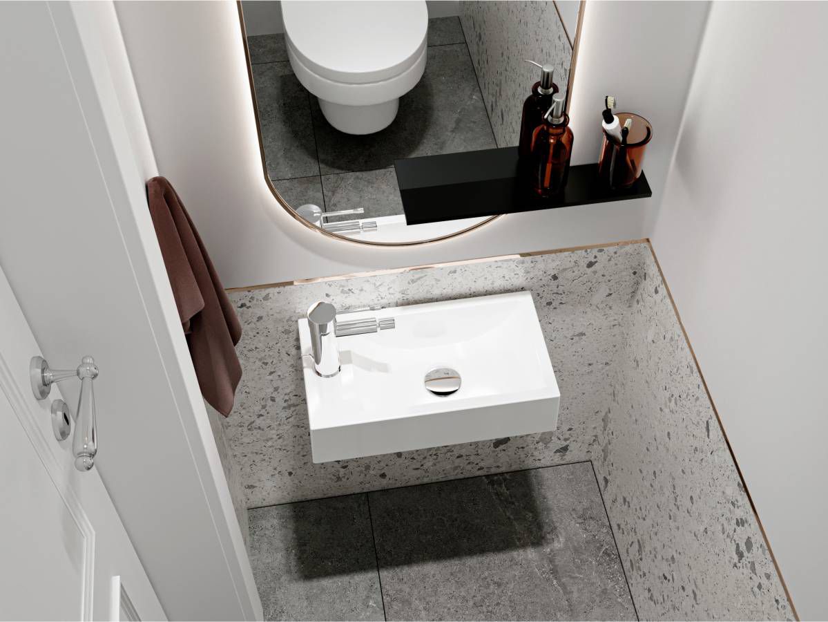 Прямоугольная форма раковины гармонично впишется в любой дизайн современной ванной комнаты.