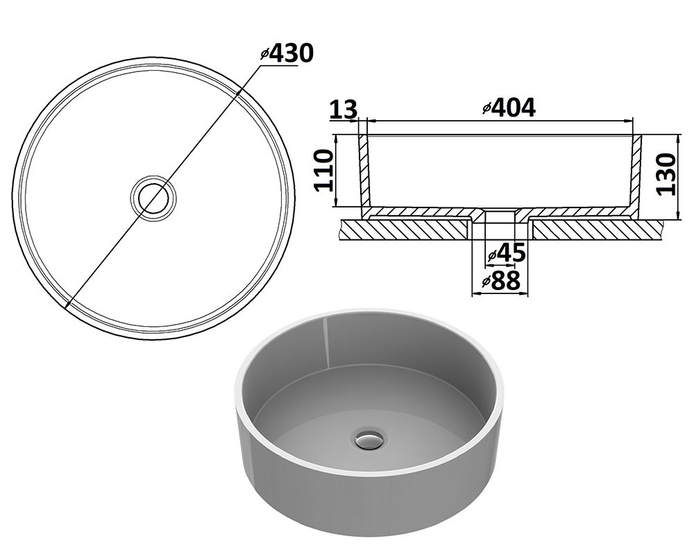 Умывальник «Оазис» 43 см белый А100 глянец | 170A100