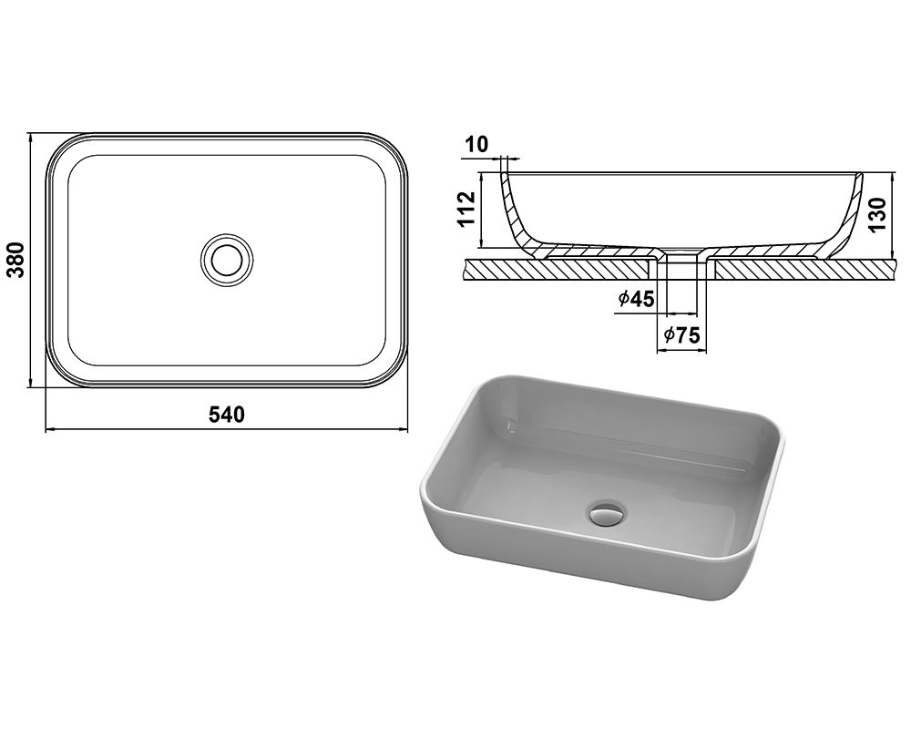 Отверстие под перелив:Без перелива